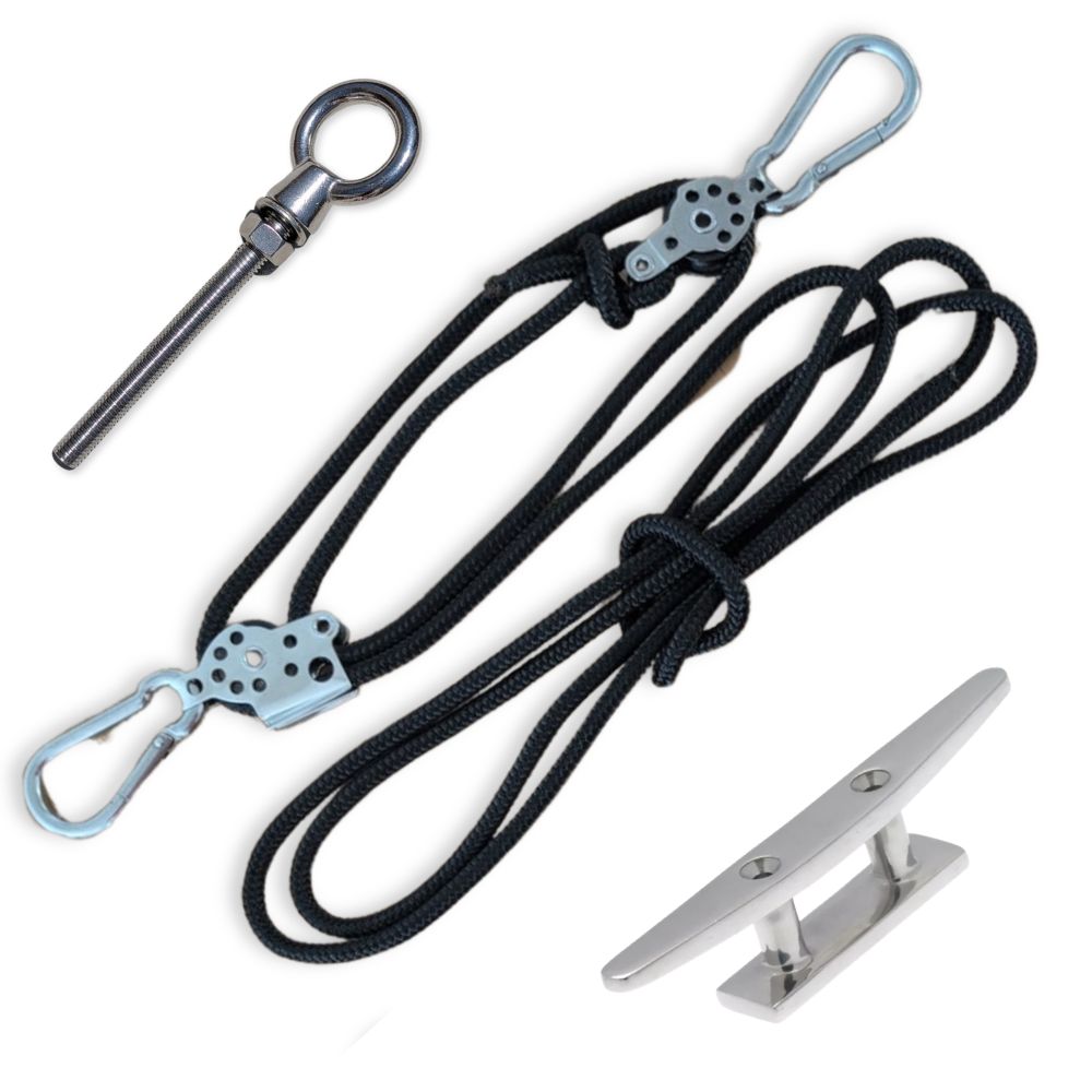 - 1 Taquet mural inox permettant de bloquer et ranger le cordage.